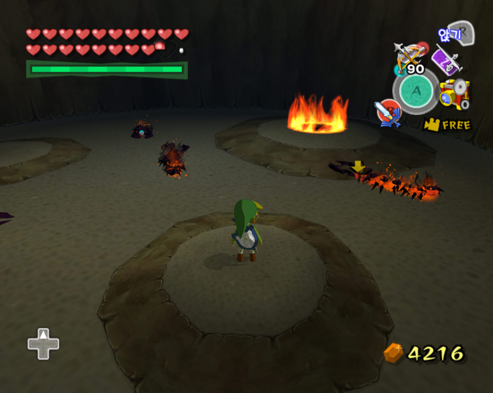 미궁 10층 : 쉼터입니다. 미궁 밖으로 나갈 수 있는 빛기둥과 다음 11층으로 이동할 수 있는 통로, 그리고 루피와 하트, 화살 등이 들어 있는 항아리들이 있습니다.