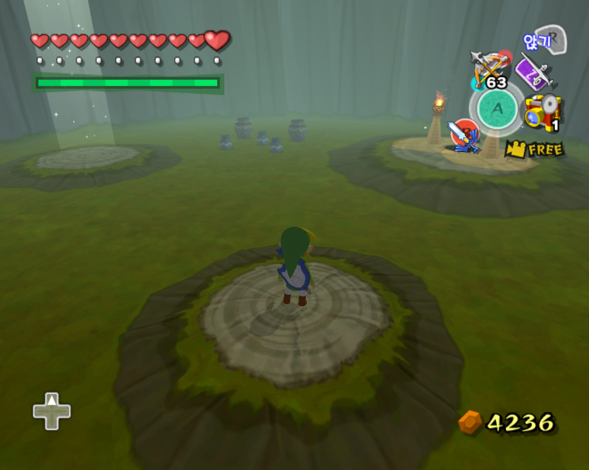 미궁 20층 : 쉼터입니다. 미궁 밖으로 나갈 수 있는 빛기둥과 다음 21층으로 이동할 수 있는 통로, 그리고 루피와 하트, 폭탄 등이 들어 있는 항아리들이 있습니다.