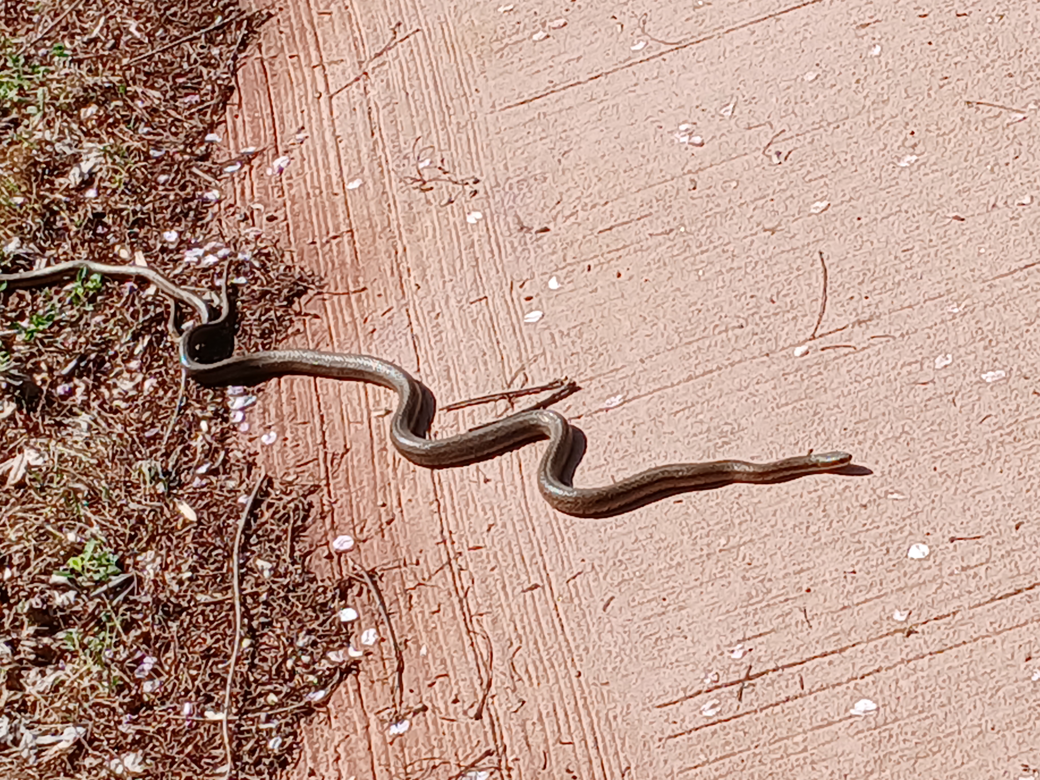 사람이 다니니까 쫄아서 인지 아니면 너무 더워서 꼼짝을 못 하는 건지 움직이지 않고 저 자세로 있더군요. 보통 뱀들은 사람을 보면 호다닥 도망가는 게 국룰 아니었나 싶은데... 고개를 살짝 들고 있는 것 보니 죽은 건 아닌데 희한하더군요.