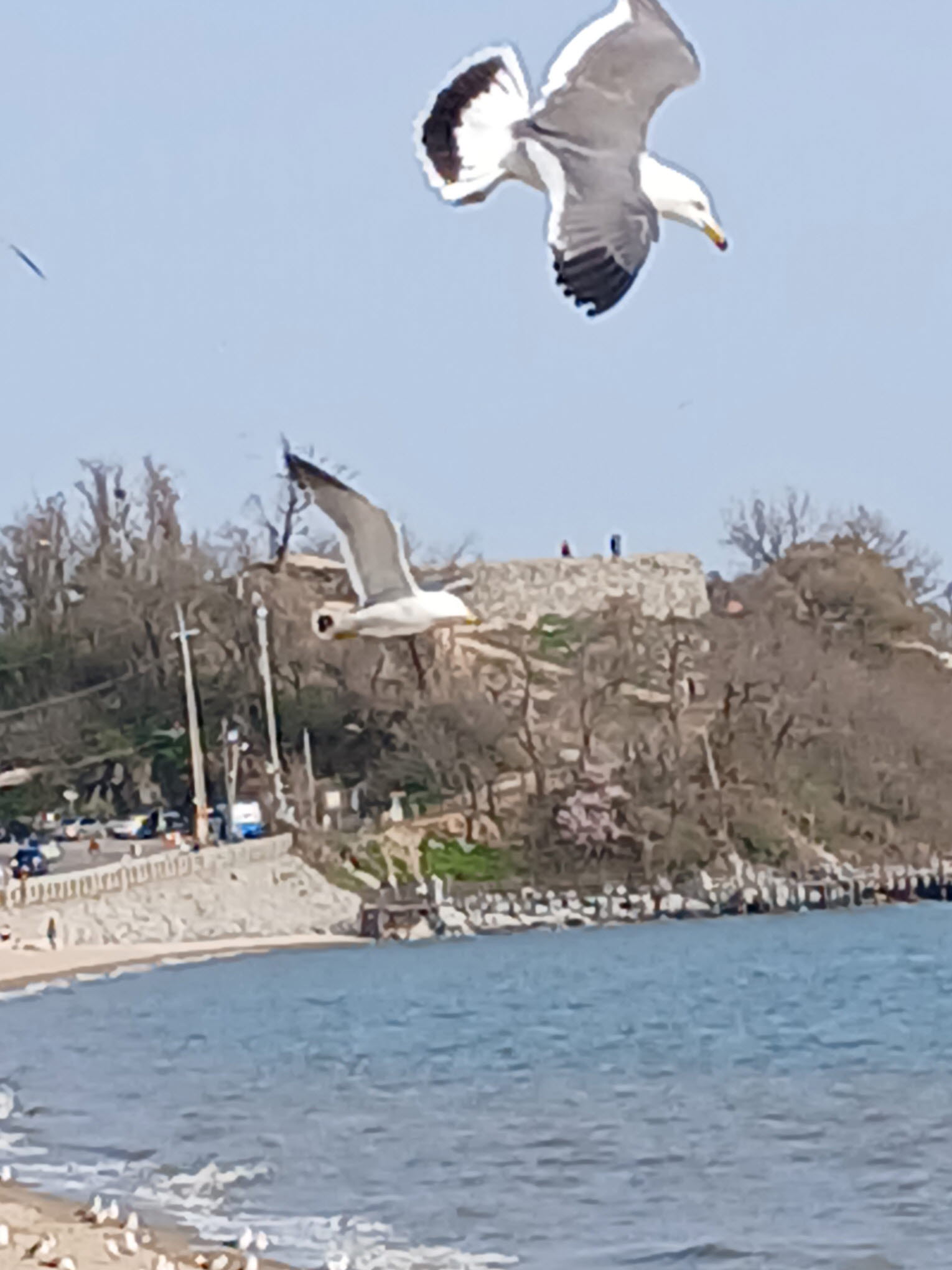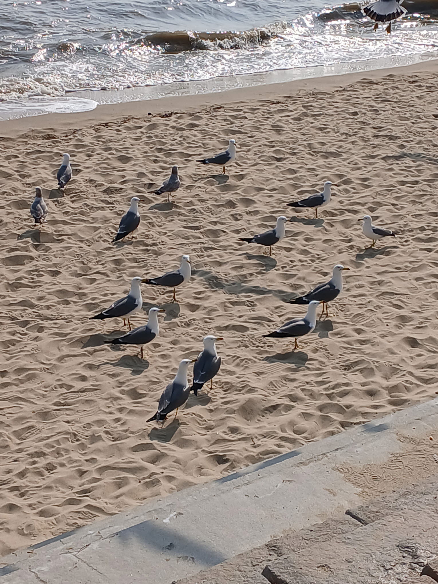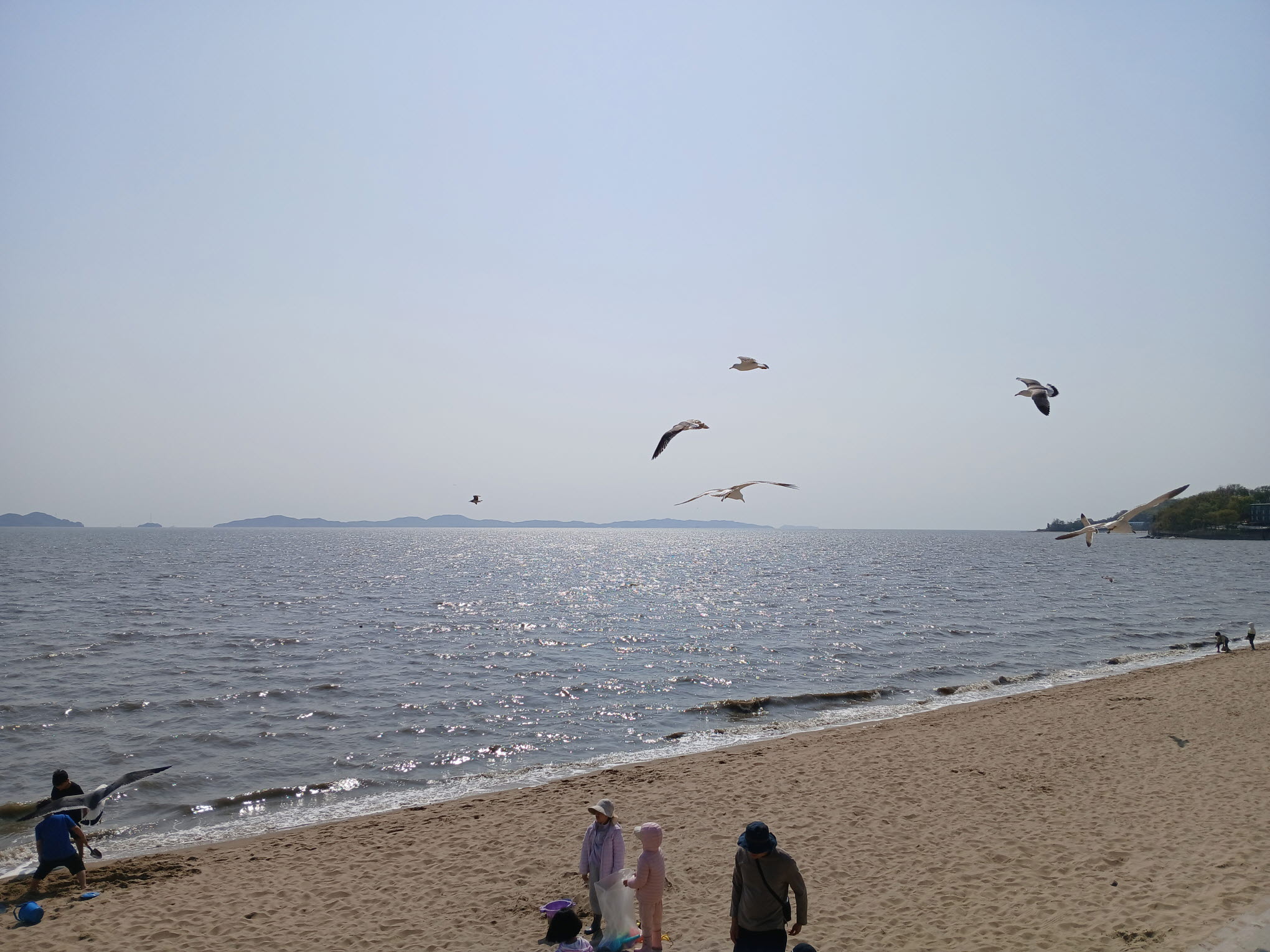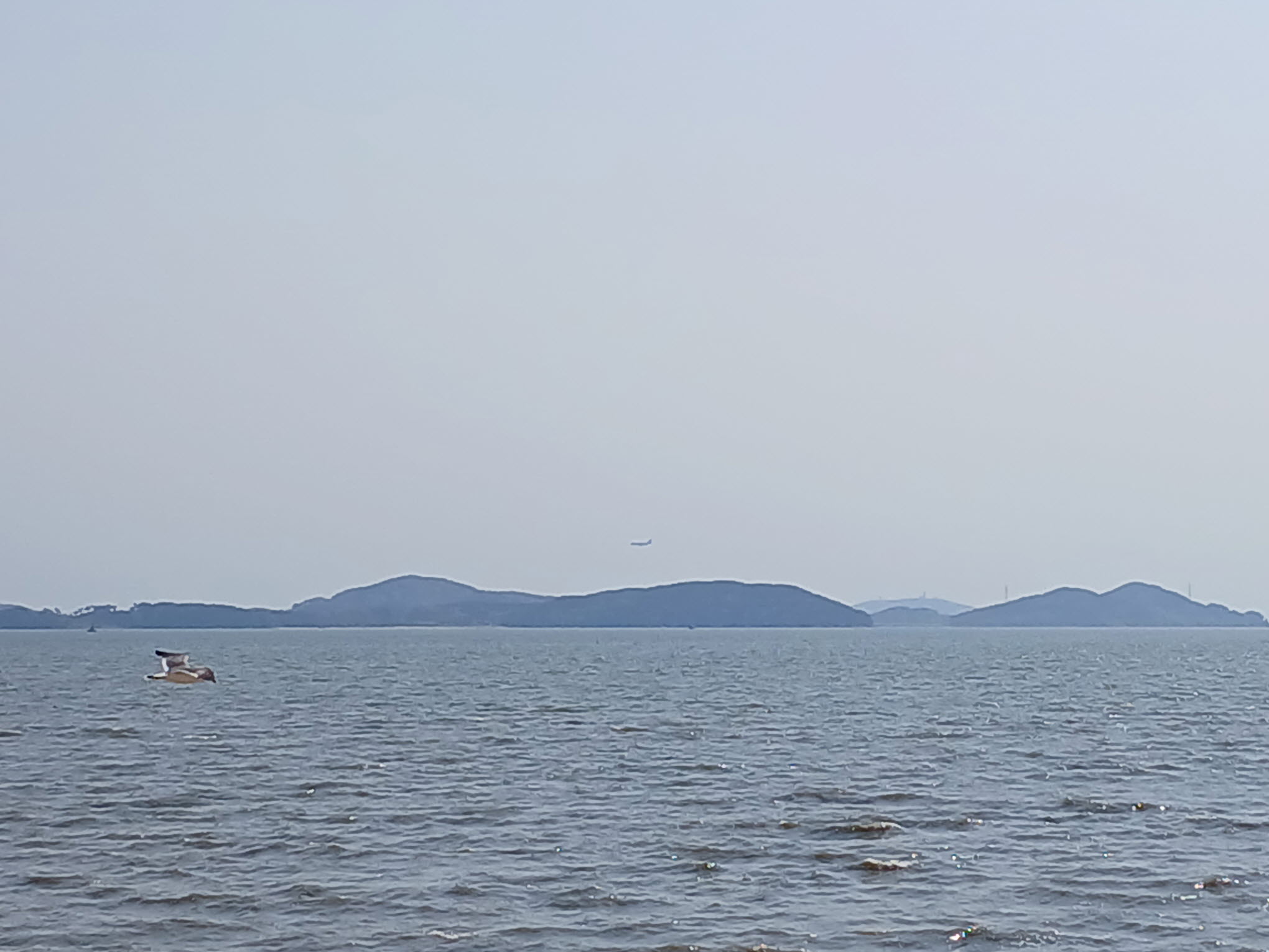 그나마 저 밥집에서 짜증 났던 감정이 날아간 건 동막 해변에 도착해서였습니다. 백사장이 그리 크지 않은 작은 해변이었는데 바닷바람도 시원하게 불고 꽤나 정돈도 잘된 느낌의 해변이더군요. 갈매기들이 오지게 많던데 웃긴 건 사람들이 손에 높이 든 건 낚아채거나 던져준 건 받아먹는데, 바닥에 떨어진 건 쳐다도 안보더군요. 입들이 고급인 갈매기들이었습니다. ㅋㅋㅋ